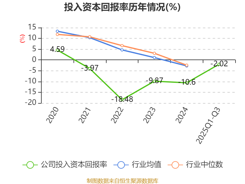 盈利能力方面, 2025年前三季度公司加权平均净资产收益率为-2.67%,同比上升0.91个百分点。公司2025年前三季度投入资本回报率为-2.02%,较上年同期上升1个百分点。