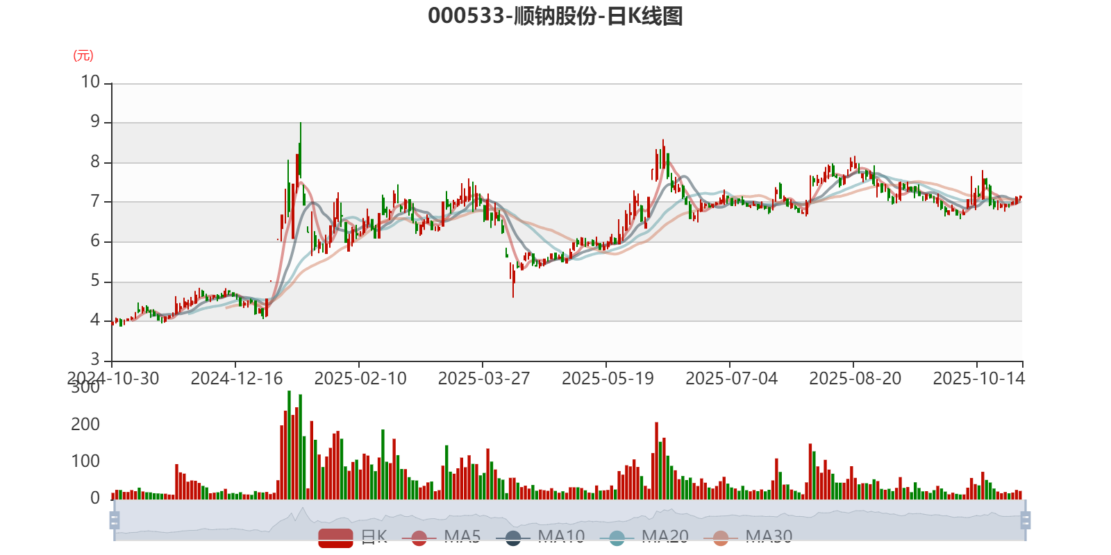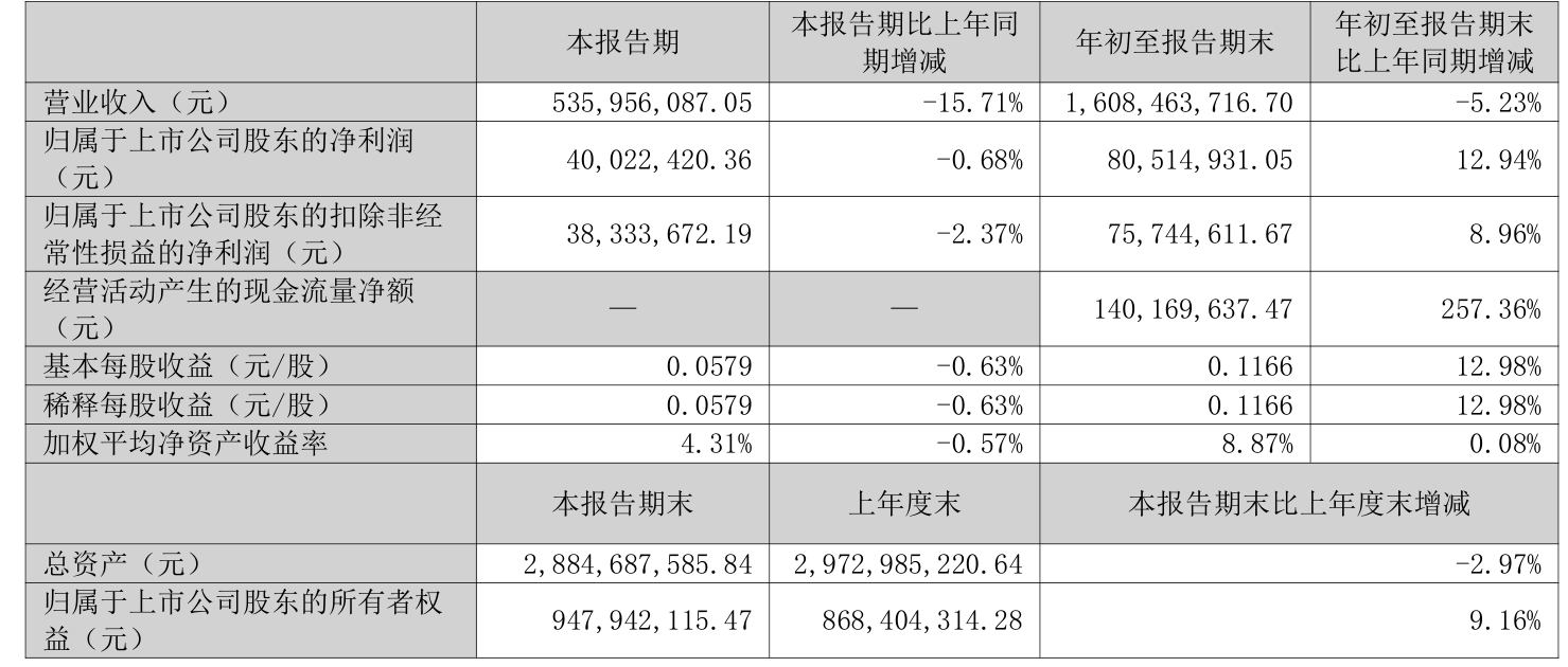 中证智能财讯顺钠股份(000533)10月30日披露2025年第三季度报告。前三季度公司实现营业总收入16.08亿元,同比下降5.23%;归母净利润8051.49万元,同比增长12.94%;扣非净利润7574.46万元,同比增长8.96%;经营活动产生的现金流量净额为1.4亿元,同比增长257.36%;报告期内,顺钠股份基本每股收益为0.1166元,加权平均净资产收益率为8.87%。