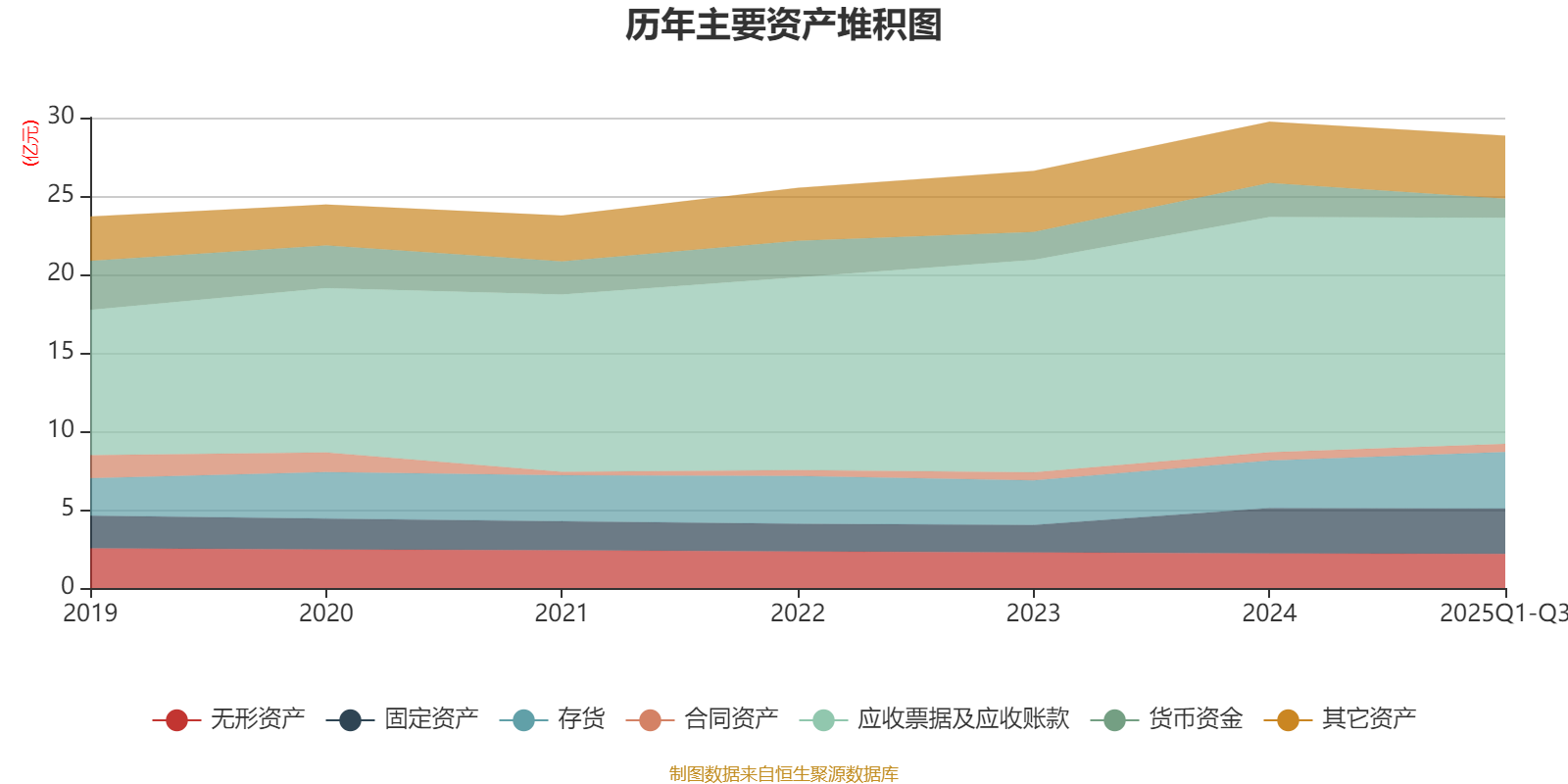 资产重大变化方面,截至2025年三季度末,公司货币资金较上年末减少44.11%,占公司总资产比重下降3.09个百分点;存货较上年末增加18.73%,占公司总资产比重上升2.28个百分点;预付款项较上年末增加38.4%,占公司总资产比重上升0.56个百分点;应收票据及应收账款较上年末减少3.89%,占公司总资产比重下降0.48个百分点。