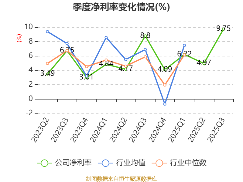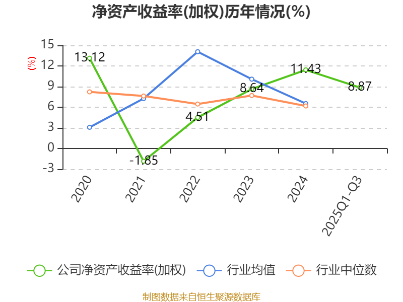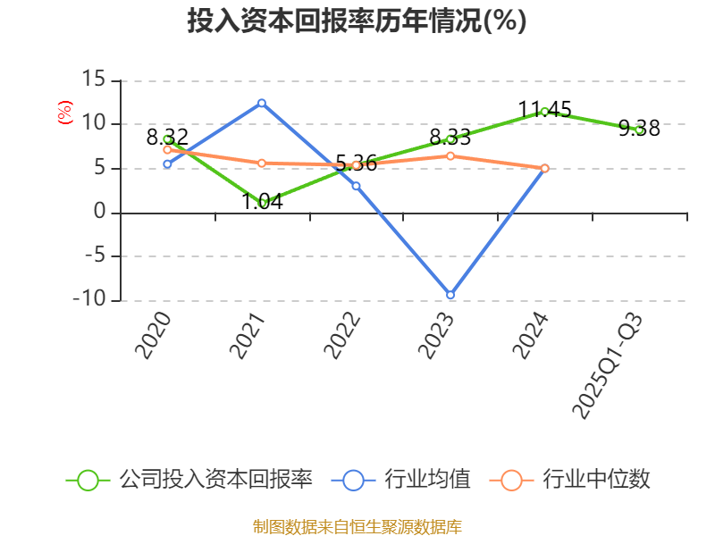 盈利能力方面, 2025年前三季度公司加权平均净资产收益率为8.87%,同比上升0.08个百分点。公司2025年前三季度投入资本回报率为9.38%,较上年同期上升0.27个百分点。