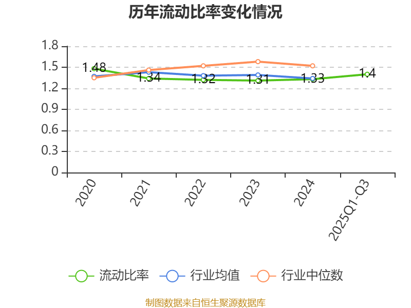 2025年前三季度,公司流动比率为1.4,速动比率为1.17。