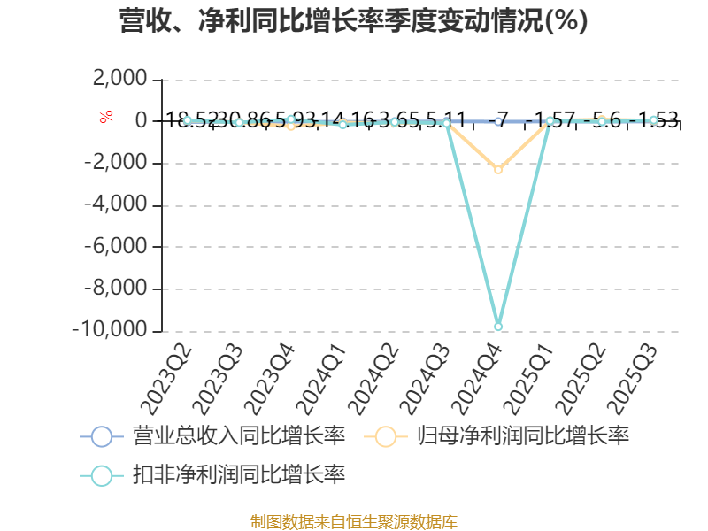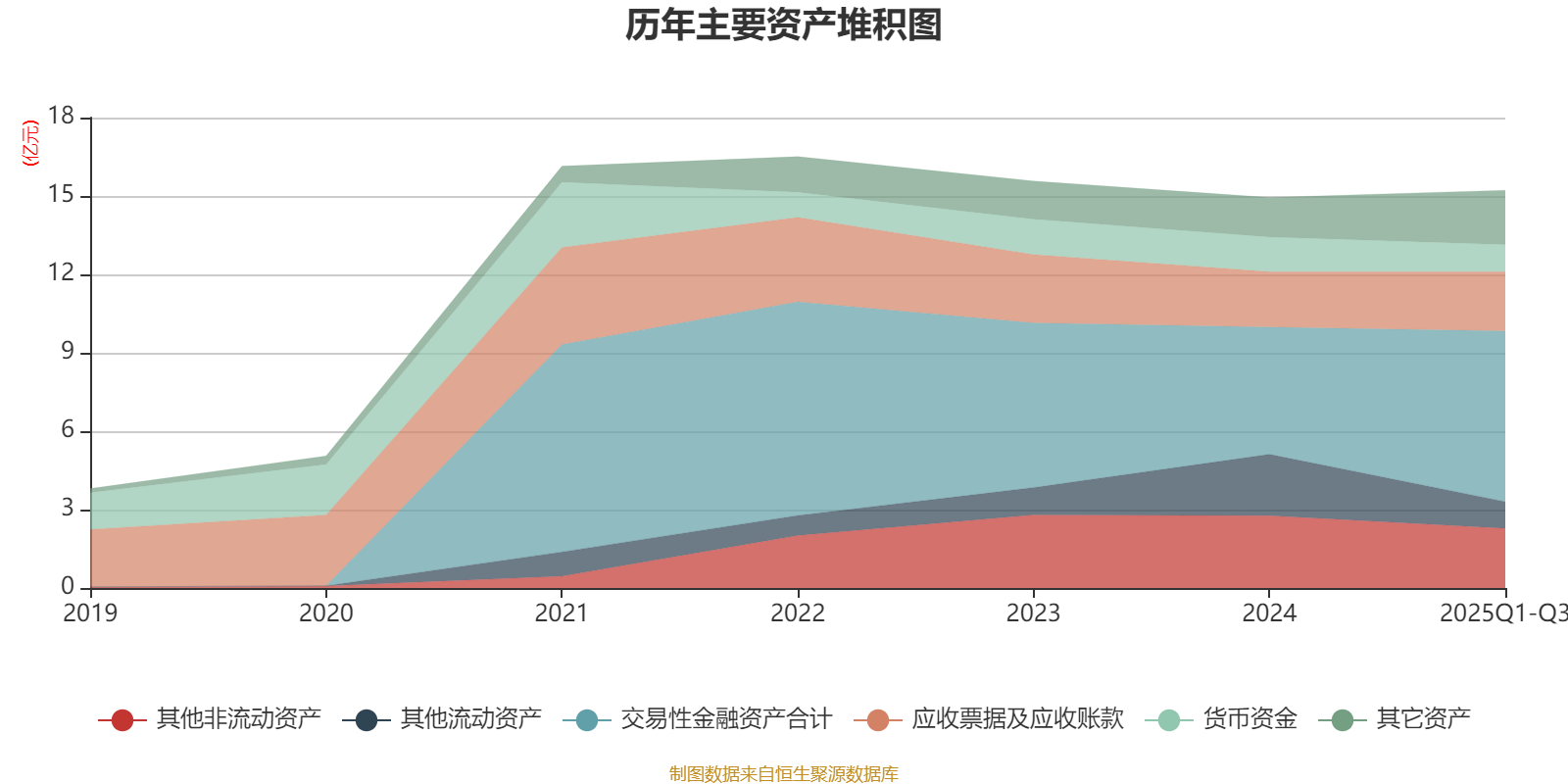 资产重大变化方面,截至2025年三季度末,公司交易性金融资产合计较上年末增加34.29%,占公司总资产比重上升10.37个百分点;其他流动资产较上年末减少56.5%,占公司总资产比重下降9.02个百分点;其他非流动资产较上年末减少17.57%,占公司总资产比重下降3.53个百分点;货币资金较上年末减少22.17%,占公司总资产比重下降2.08个百分点。