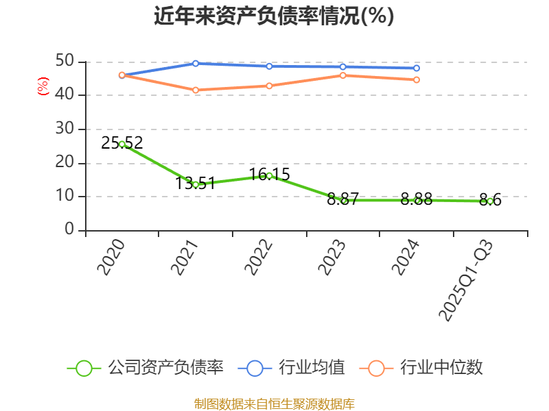 2025年前三季度,公司流动比率为9.89,速动比率为9.86。