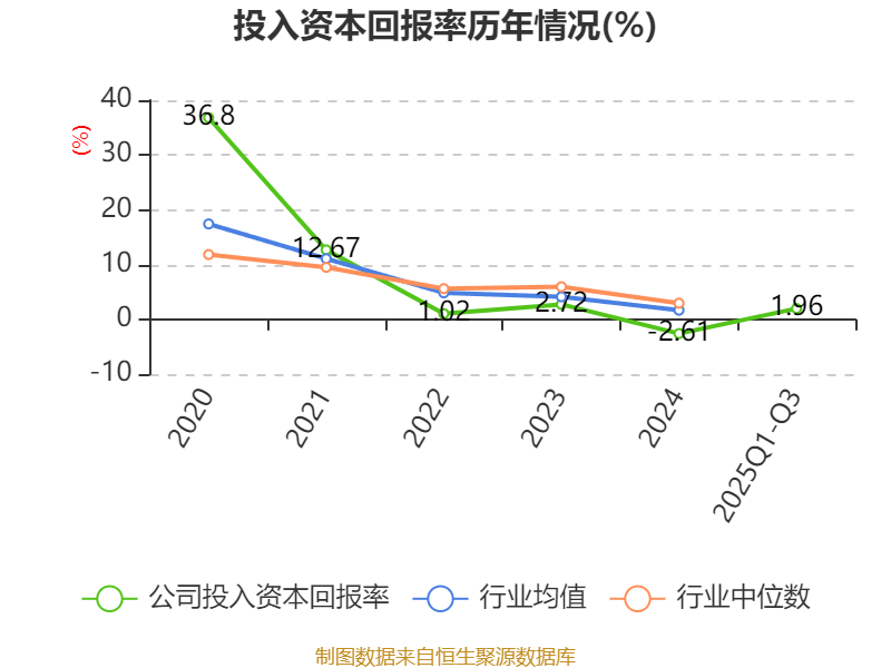 盈利能力方面, 2025年前三季度公司加权平均净资产收益率为1.98%,同比上升0.82个百分点。公司2025年前三季度投入资本回报率为1.96%,较上年同期上升0.89个百分点。