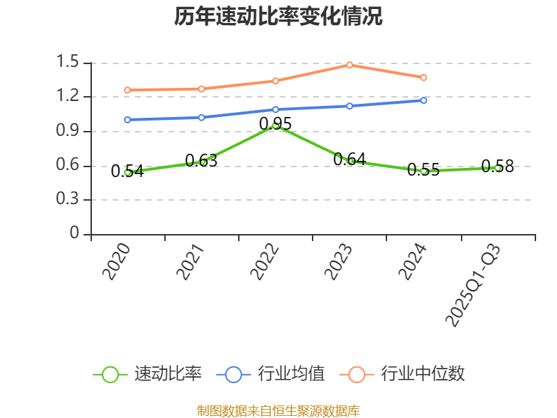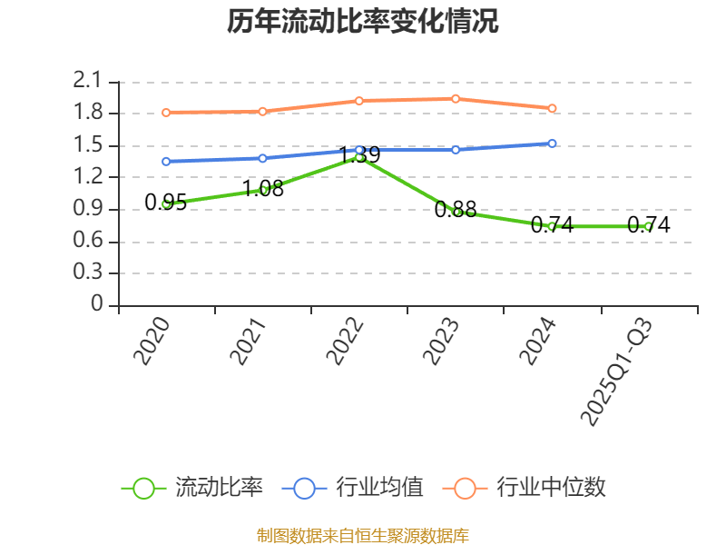 2025年前三季度,公司流动比率为0.74,速动比率为0.58。