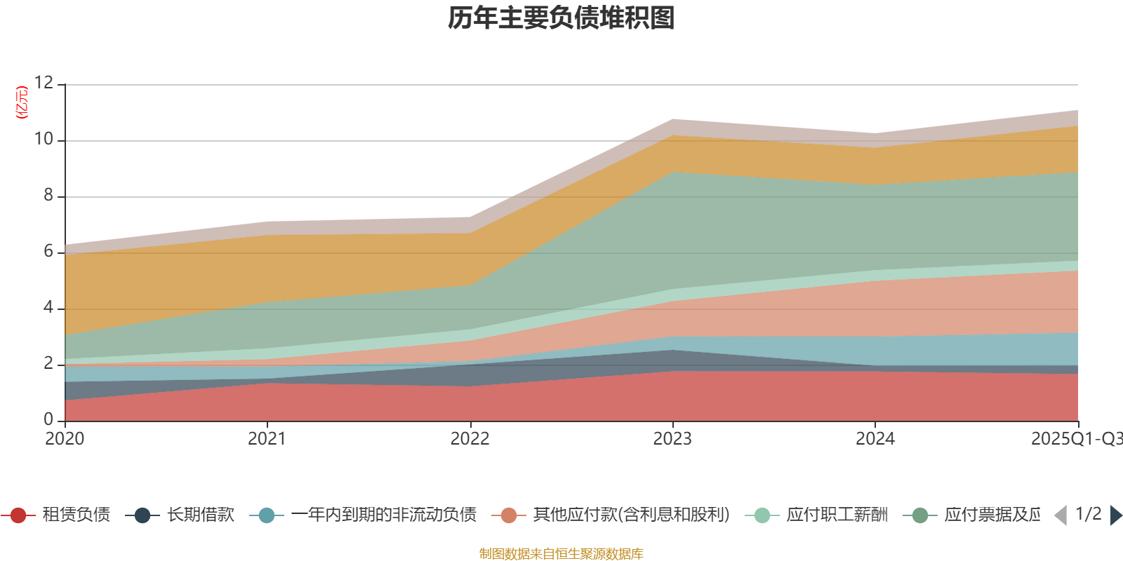 负债重大变化方面,截至2025年三季度末,公司短期借款较上年末增加25.31%,占公司总资产比重上升2.23个百分点;其他应付款(含利息和股利)较上年末增加11.09%,占公司总资产比重上升1.5个百分点;一年内到期的非流动负债较上年末增加13.07%,占公司总资产比重上升0.92个百分点;应付票据及应付账款较上年末增加3.58%,占公司总资产比重上升0.78个百分点。