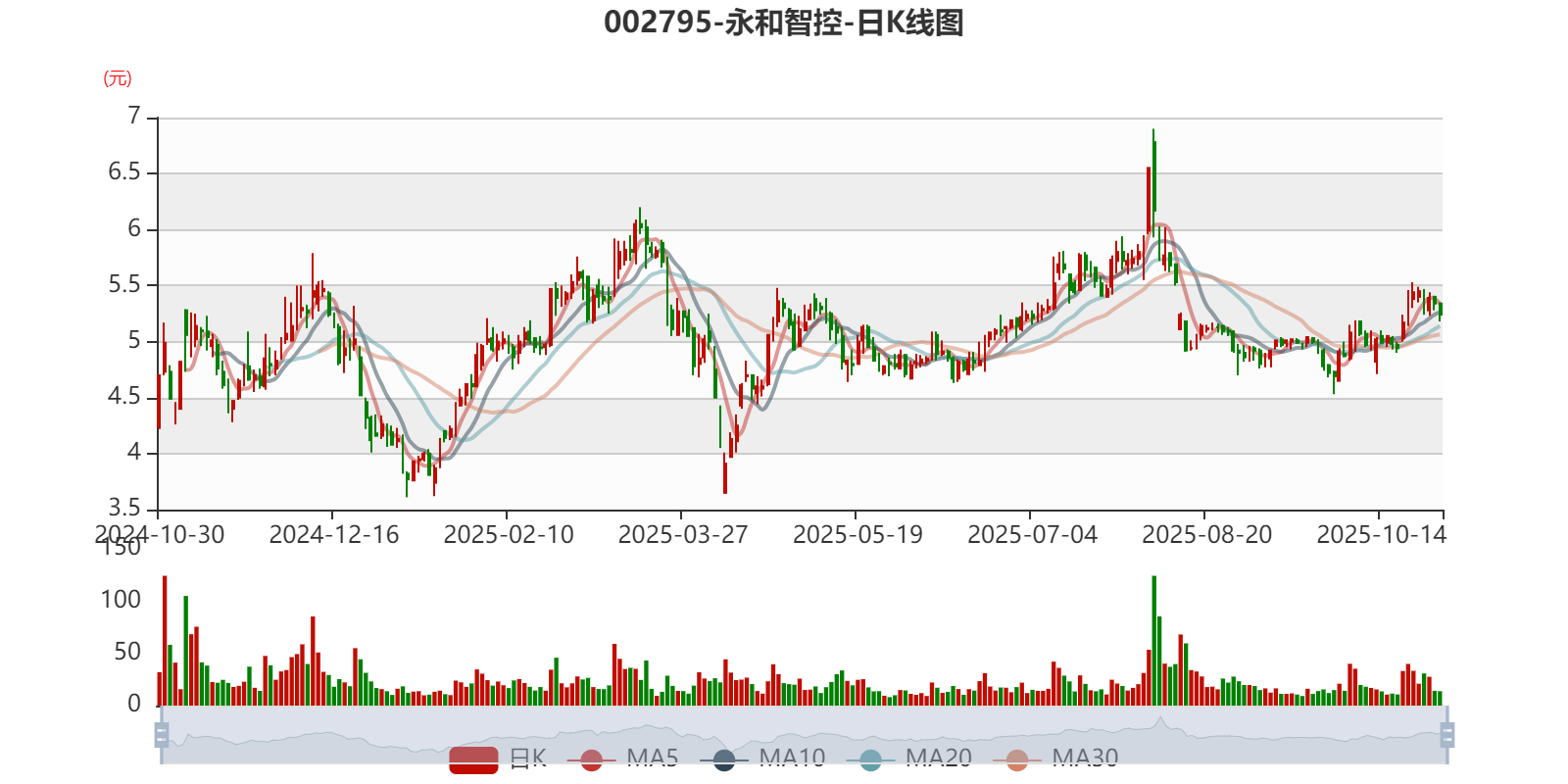 以10月29日收盘价计算,永和智控目前市盈率(TTM)约为-8.3倍,市净率(LF)约5.1倍,市销率(TTM)约3倍。