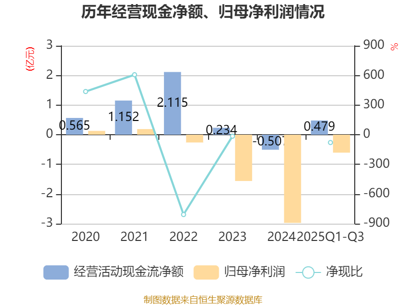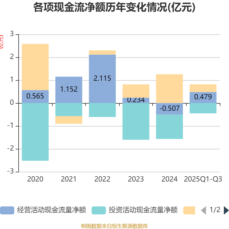2025年前三季度,公司经营活动现金流净额为4789.31万元,同比增加1.24亿元;筹资活动现金流净额3360.91万元,同比减少7758.61万元;投资活动现金流净额-4499.59万元,上年同期为-5472.97万元。