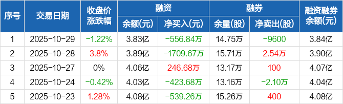贵州轮胎融资融券信息显示,2025年10月29日融资净偿还556.84万元;融资余额3.83亿元,较前一日下降1.43%。