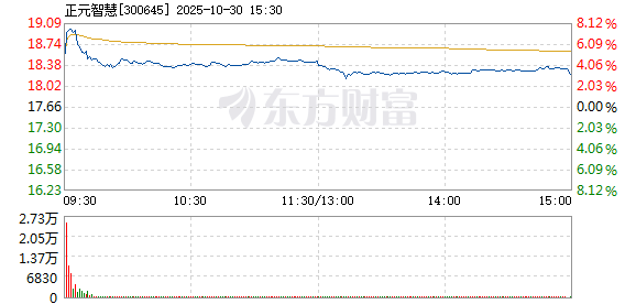正元智慧盘中快速上涨,5分钟内涨幅超过2%,截至9点30分,报18.95元,成交3469.25万元,换手率1.33%。