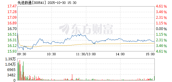 先进数通盘中加速下跌,5分钟内跌幅超过2%,截至9点30分,报16.12元,成交2113.96万元,换手率0.33%。