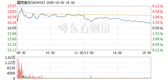 国茂股份盘中涨幅达5%,截至9点33分,报16.95元,成交5641.53万元,换手率0.52%。