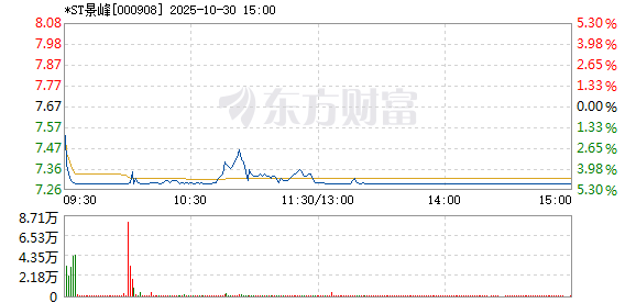 *ST景峰盘中打开跌停,现报7.3元,成交1.44亿元,换手率2.23%。该股之前于9点34分跌停。