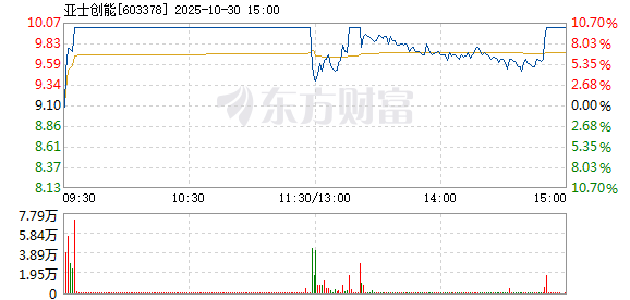 以下是亚士创能在北京时间10月30日09:34分盘口异动快照:10月30日9点34分,