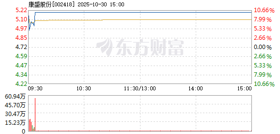 以下是康盛股份在北京时间10月30日09:36分盘口异动快照:10月30日9点36分,