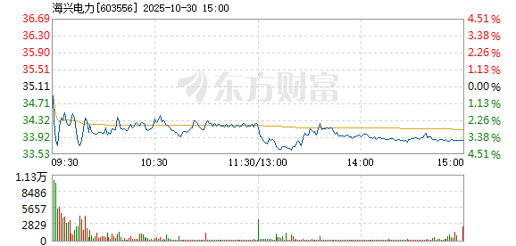 以下是海兴电力在北京时间10月30日09:36分盘口异动快照:10月30日,