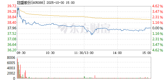 冠盛股份盘中快速回调,5分钟内跌幅超过2%,截至9点37分,报38.61元,成交1.25亿元,换手率1.59%。