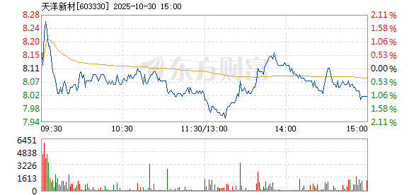 以下是天洋新材在北京时间10月30日09:37分盘口异动快照:10月30日,
