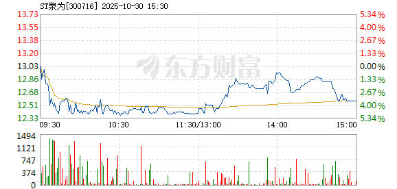 以下是ST泉为在北京时间10月30日09:39分盘口异动快照:10月30日,