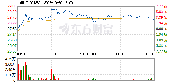 中电港盘中快速回调,5分钟内跌幅超过2%,截至9点49分,报28.56元,成交15.10亿元,换手率12.17%。