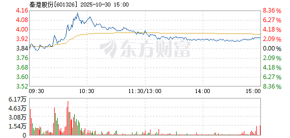 以下是秦港股份在北京时间10月30日09:55分盘口异动快照:10月30日,