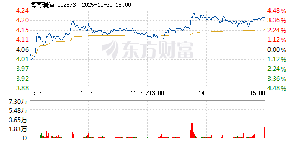 以下是海南瑞泽在北京时间10月30日10:12分盘口异动快照:10月30日,