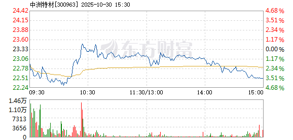 以下是中洲特材在北京时间10月30日10:23分盘口异动快照:10月30日,