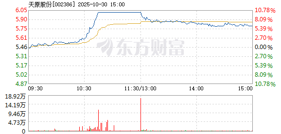 以下是天原股份在北京时间10月30日10:35分盘口异动快照:10月30日,