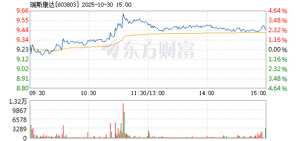 瑞斯康达10月30日盘中涨幅达5%