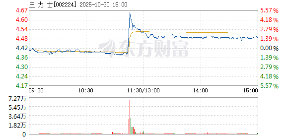 盘中涨幅达5%,截至11点15分,报4.68元,成交6977.14万元,换手率1.94%。