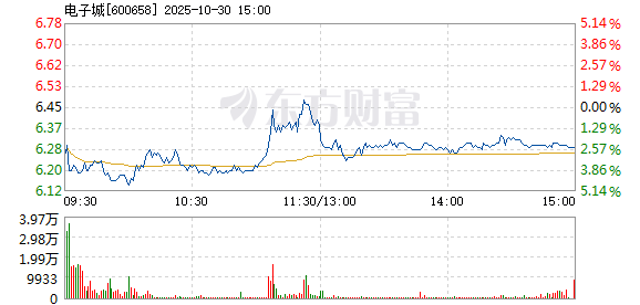 电子城盘中快速反弹,5分钟内涨幅超过2%,截至11点24分,报6.48元,成交3.45亿元,换手率4.94%。