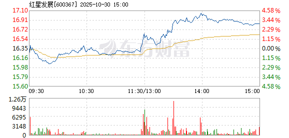 红星发展盘中快速反弹,5分钟内涨幅超过2%,截至11点29分,报16.63元,成交1.63亿元,换手率3.11%。