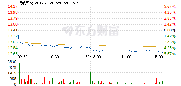 以下是扬帆新材在北京时间10月30日13:10分盘口异动快照:10月30日,