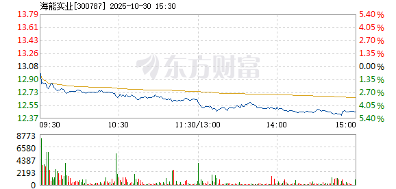 以下是海能实业在北京时间10月30日14:46分盘口异动快照:10月30日,