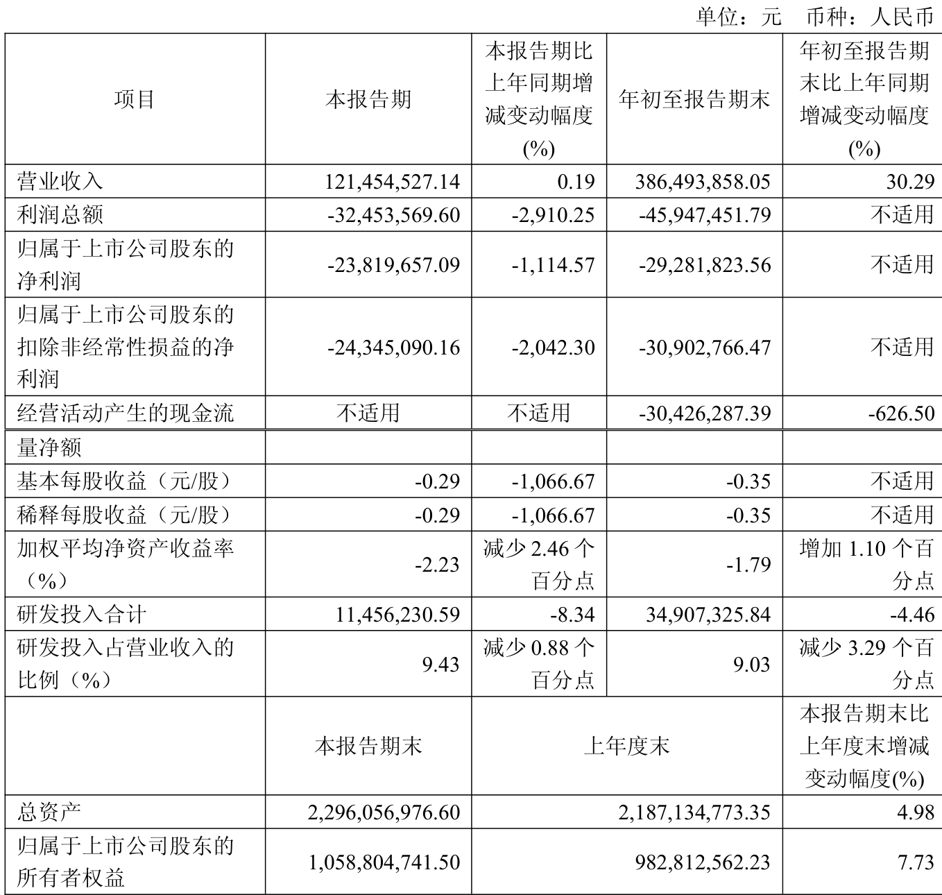 中证智能财讯华依科技(688071)10月31日披露2025年第三季度报告。前三季度公司实现营业总收入3.86亿元,同比增长30.29%;归母净利润亏损2928.18万元,上年同期亏损2937.92万元;扣非净利润亏损3090.28万元,上年同期亏损3248.24万元;经营活动产生的现金流量净额为-3042.63万元,上年同期为577.9万元;报告期内,华依科技基本每股收益为-0.35元,加权平均净资产收益率为-1.79%。