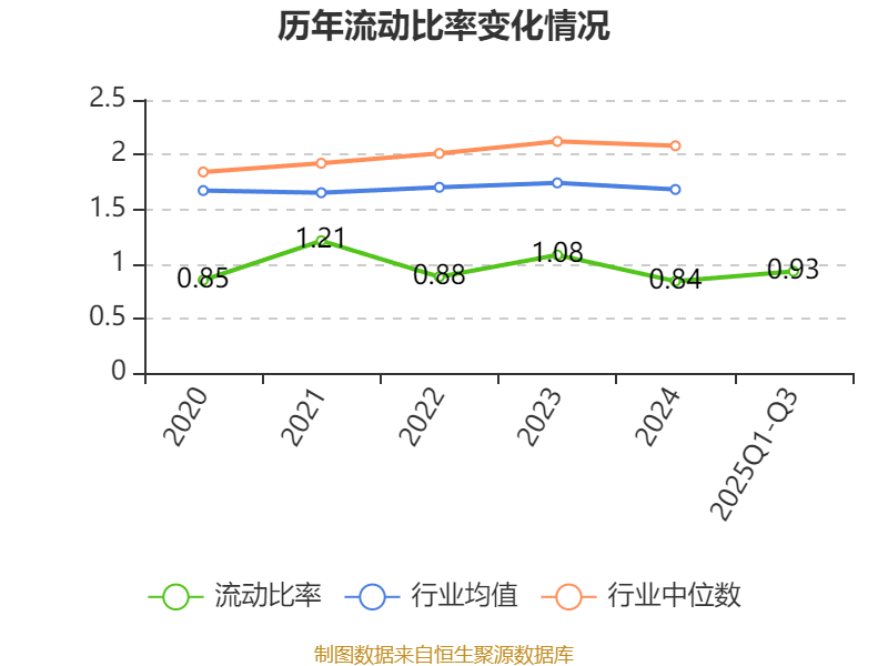 2025年前三季度,公司流动比率为0.93,速动比率为0.77。
