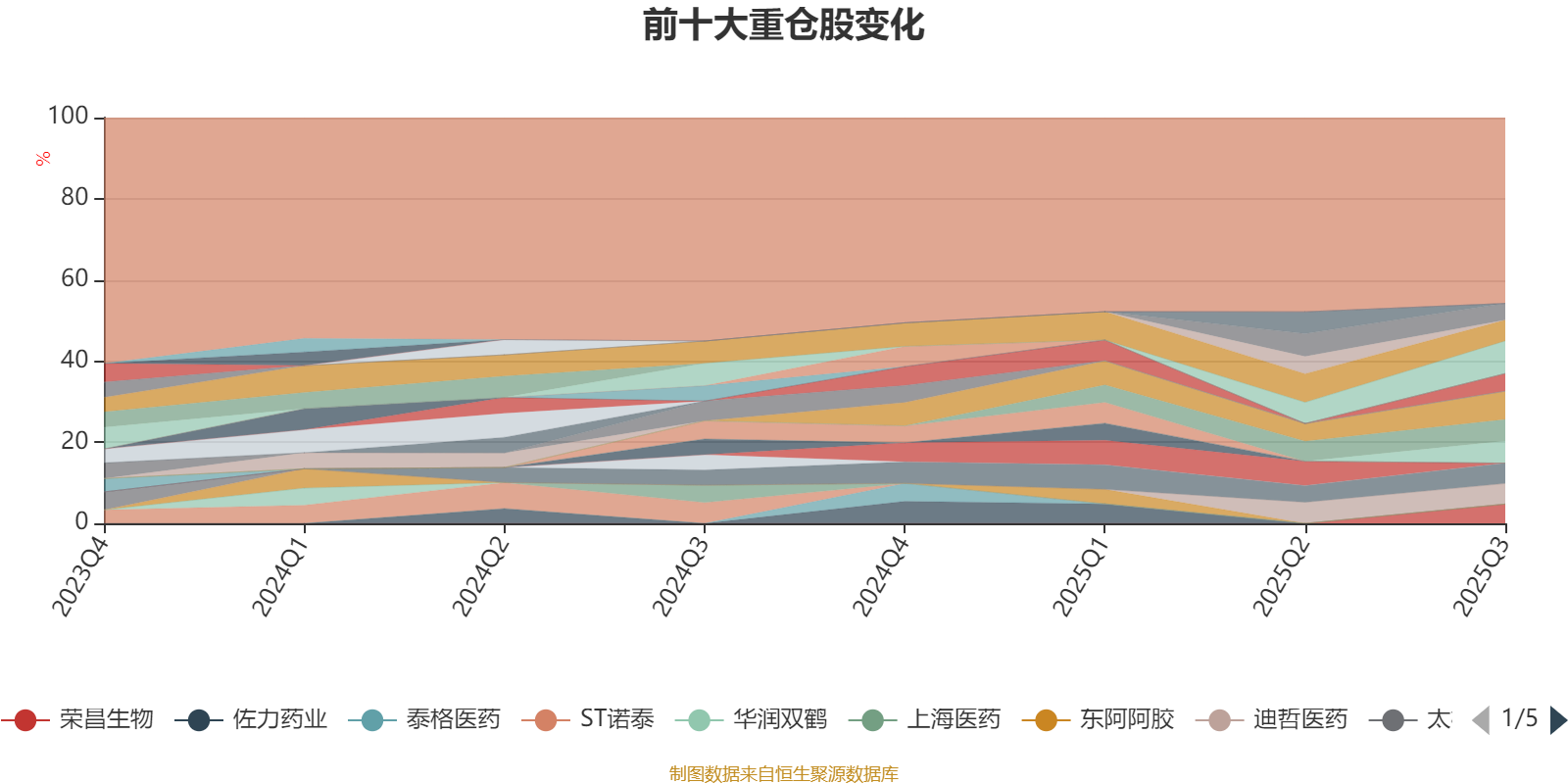 截至2025年三季度末,基金十大重仓股分别是恒瑞医药、药明康德、苑东生物、百济神州、新诺威、迪哲医药、泽璟制药、荣昌生物、百利天恒、益方生物。