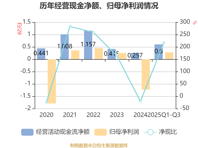 2025年前三季度,公司经营活动现金流净额为6002.04万元,同比增长417.5%;筹资活动现金流净额4361.38万元,同比增加2672.52万元;投资活动现金流净额-8567.82万元,上年同期为-1.89亿元。