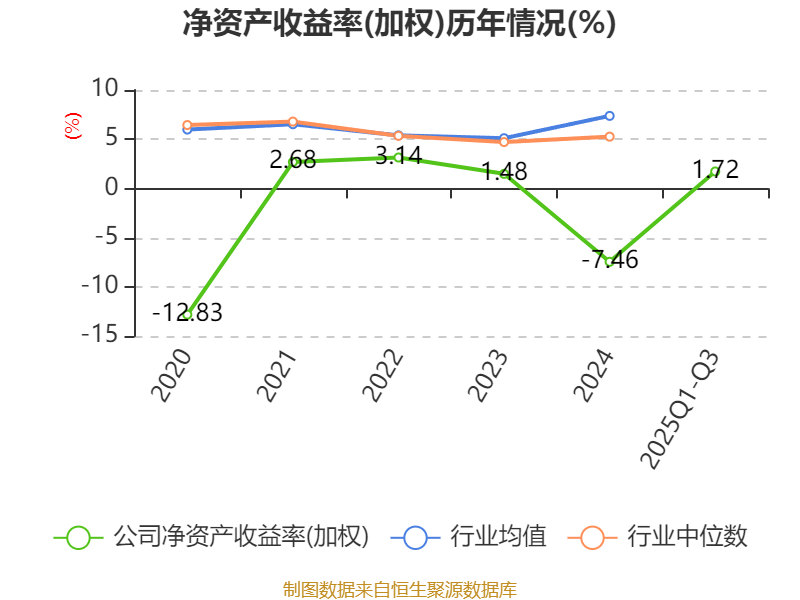盈利能力方面, 2025年前三季度公司加权平均净资产收益率为1.72%,同比上升3.52个百分点。公司2025年前三季度投入资本回报率为1.65%,较上年同期上升2.61个百分点。