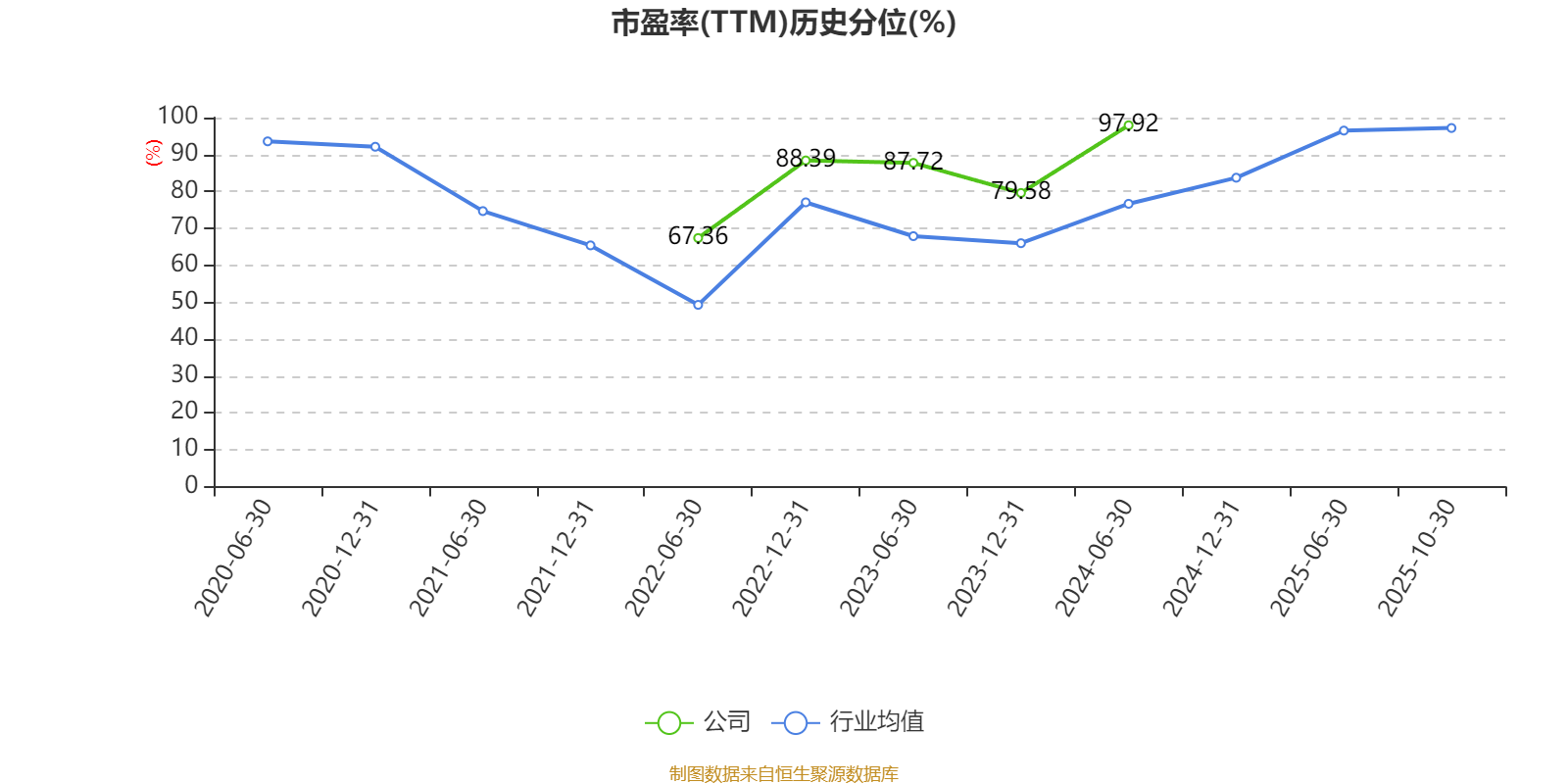 市盈率、市净率为负时,不显示当期分位数,会导致折线图中断。