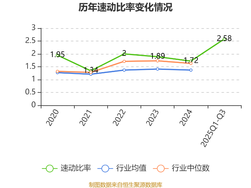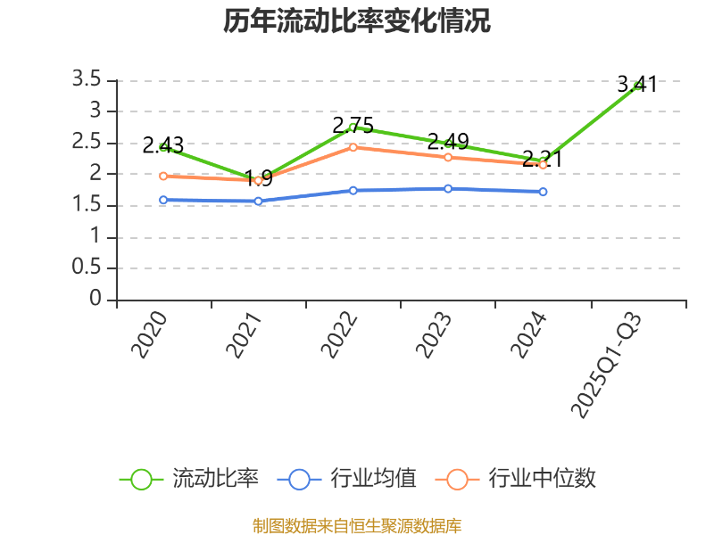 2025年前三季度,公司流动比率为3.41,速动比率为2.58。