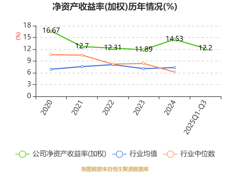 盈利能力方面, 2025年前三季度公司加权平均净资产收益率为12.2%,同比下降0.01个百分点。公司2025年前三季度投入资本回报率为10.63%,较上年同期上升0.36个百分点。