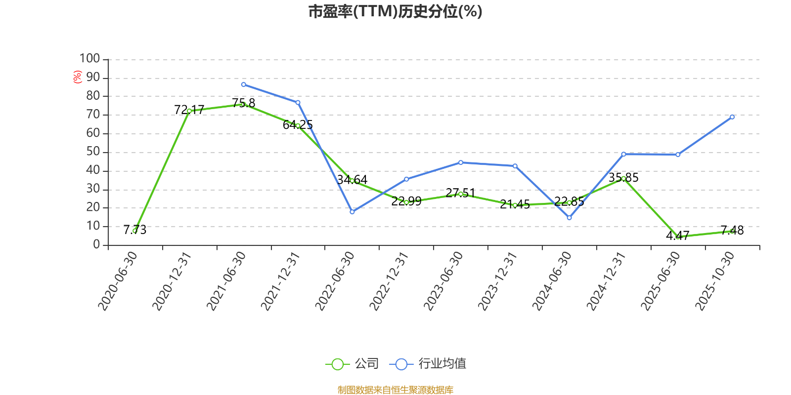 市盈率、市净率为负时,不显示当期分位数,会导致折线图中断。