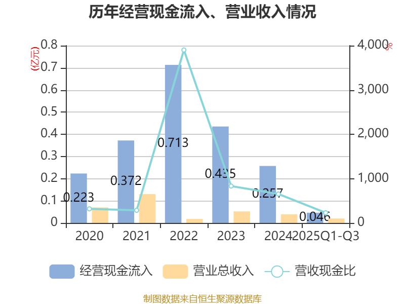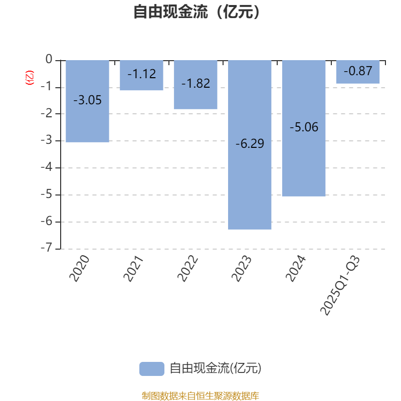 2025年前三季度,公司经营活动现金流净额为-1.72亿元,同比减少2817.46万元;筹资活动现金流净额-367.98万元,同比增加47.67万元;投资活动现金流净额1.6亿元,上年同期为-2.99亿元。