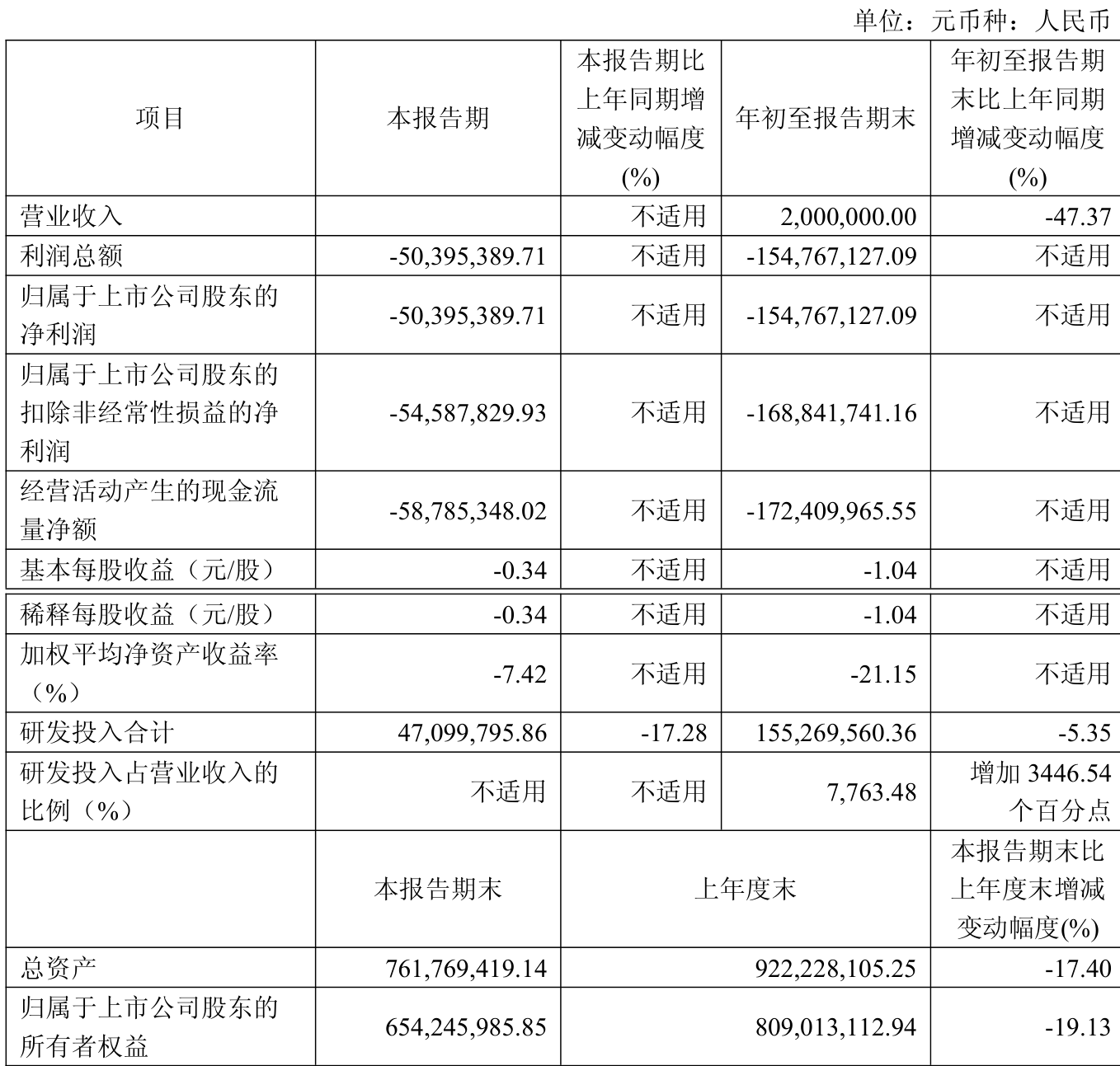 中证智能财讯首药控股(688197)10月31日披露2025年第三季度报告。前三季度公司实现营业总收入200万元,同比下降47.37%;归母净利润亏损1.55亿元,上年同期亏损1.6亿元;扣非净利润亏损1.69亿元,上年同期亏损1.72亿元;经营活动产生的现金流量净额为-1.72亿元,上年同期为-1.44亿元;报告期内,首药控股基本每股收益为-1.04元,加权平均净资产收益率为-21.15%。