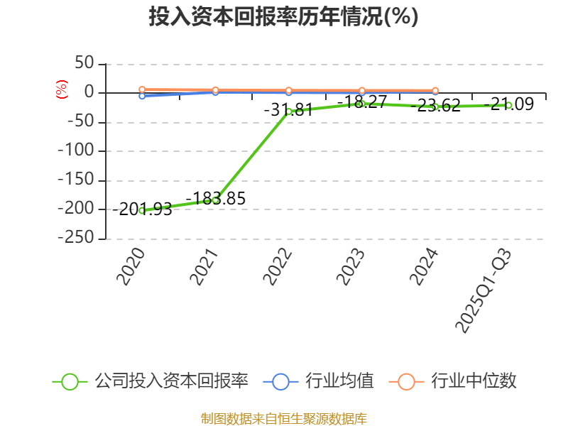 盈利能力方面, 2025年前三季度公司加权平均净资产收益率为-21.15%,同比下降4.15个百分点。公司2025年前三季度投入资本回报率为-21.09%,较上年同期下降3.66个百分点。