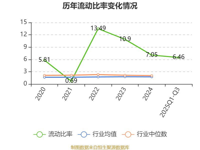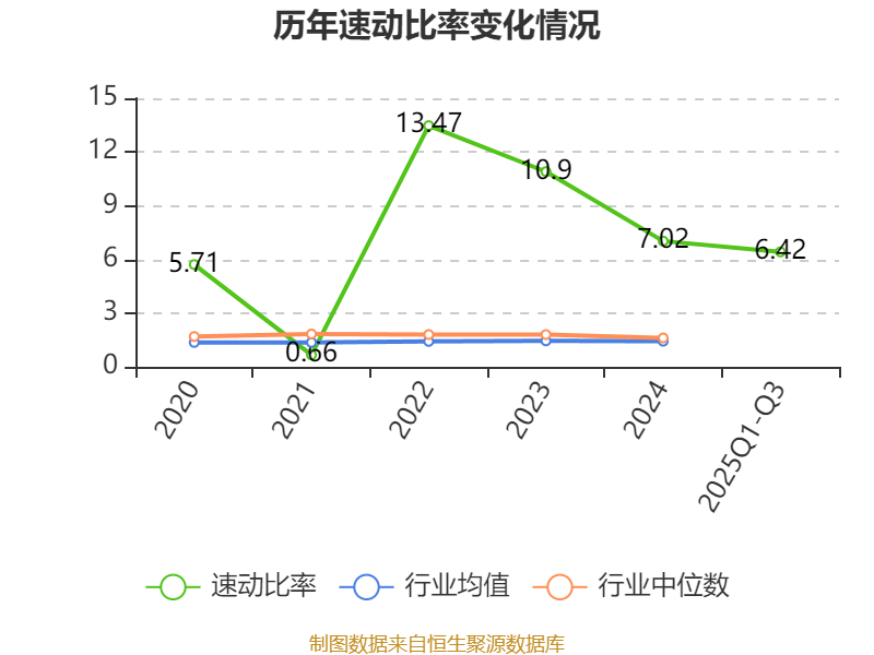 2025年前三季度,公司流动比率为6.46,速动比率为6.42。