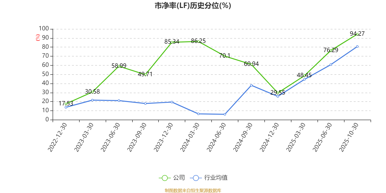 市盈率、市净率为负时,不显示当期分位数,会导致折线图中断。