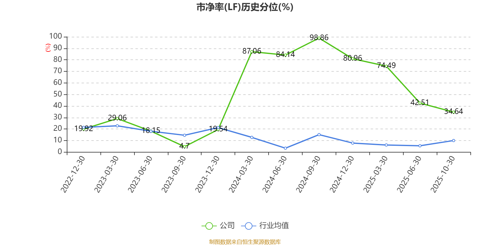 市盈率、市净率为负时,不显示当期分位数,会导致折线图中断。