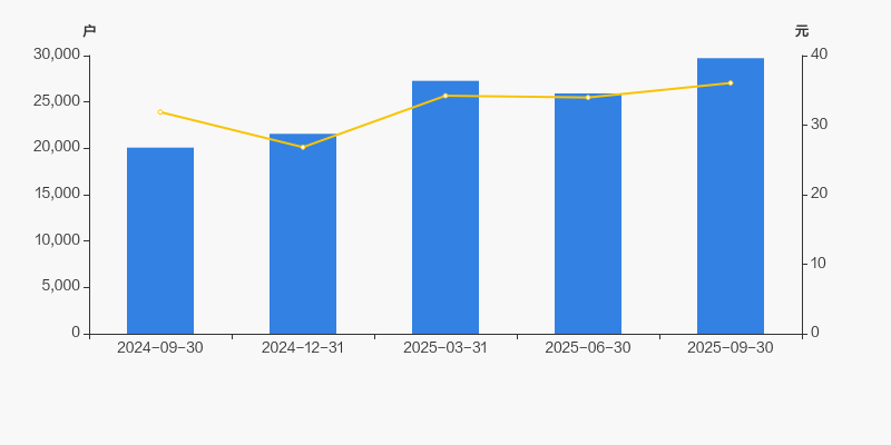 2024年9月30日至今,公司股东户数显著增长,区间涨幅为48.05%。2024年9月30日至2025年9月30日区间股价上涨13.11%。